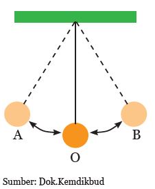 Sobat pintar, semua benda akan bergetar apabila diberi gangguan. Benda yang bergetar ada yang dapat terlihat secara kasat mata karena simpangan yang diberikan besar, ada pula yang tidak dapat dilihat karena simpangannya kecil. Benda dapat dikatakan bergetar jika benda bergerak bolak-balik secara teratur melalui titik kesetimbangan. Apakah orang yang berjalan bolak-balik dapat disebut dengan bergetar? Tentu saja tidak. Orang yang berjalan bolak balik belum tentu melalui titik kesetimbangan. Agar memahami tentang getaran, perhatikan gambar di bawah ini tentang bandul sederhana.