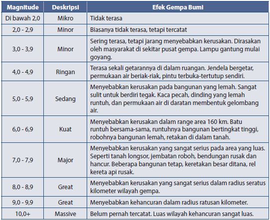 Gempa dikategorikan seperti pada Tabel dibawah.